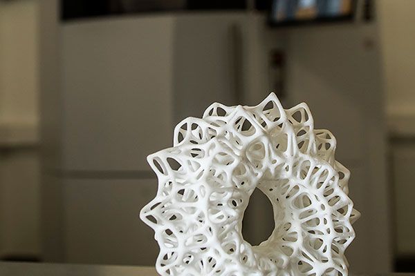 The UP-3D Centre offers SLA printing in a variety of colours and material properties, including transparent and flexible materials. The applications of the technology are most similar to Polyjet, with the difference that SLA objects are monochrome. Its high accuracy and material properties make it suitable for use in jewellery as well as medical and engineering applications.