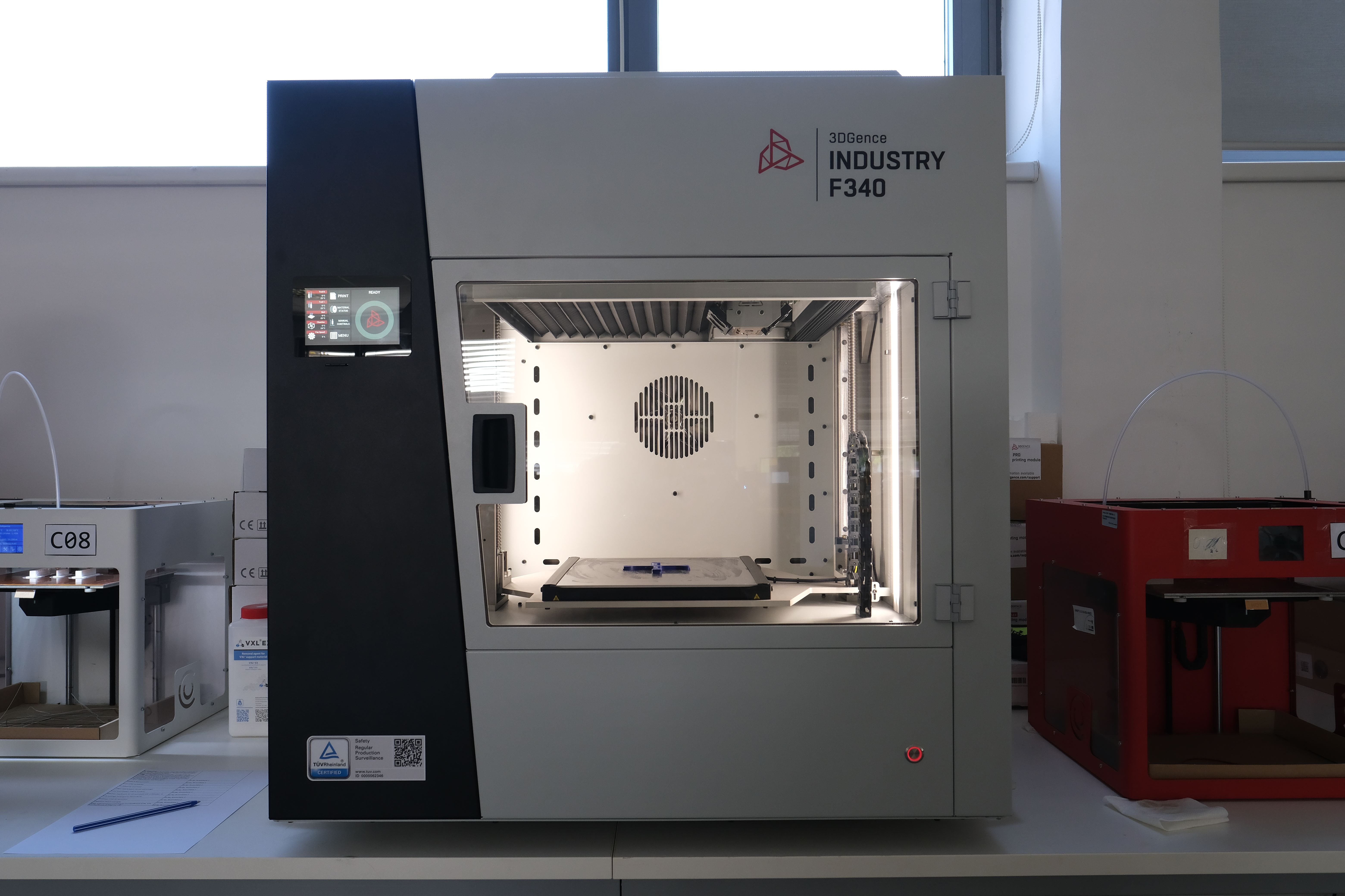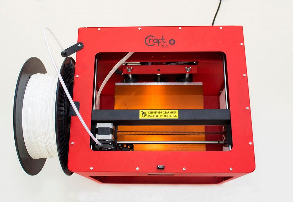 Compared to the CraftBot series, this device has increased print volume, heating capacity and improved bearings for quieter and more accurate operation